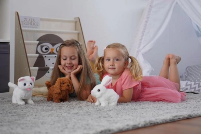 Po zapnutí pejsek chodí, štěká a vrtí ocáskem – podpora interaktivní hry a dětské představivosti.