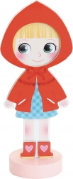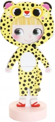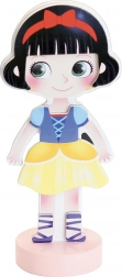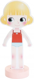 - 1 dřevěná figurka na podstavci, 36 magnetických dílků oblečení a doplňků