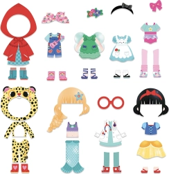 Šaty, boty, klobouky i doplňky – magnetické kusy snadno přichytíte a obměníte během chvilky. Děti si trénují jemnou motoriku a tvořivost.
