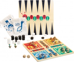 Objevte nadčasovou zábavu pro celou rodinu s tímto tradičním dřevěným souborem stolních her VILAC. Najdete v něm žolíkové karty, dámu, Člověče, nezlob se, backgammon a husí hru na oboustranných dřevěných deskách s ilustracemi Ingely P. Arrhenius ve vintage stylu. Figurky jsou prakticky uloženy v textilních pytlících a balení obsahuje 52 hracích karet. Vhodné od 4 let.