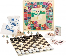 Tento pečlivě zpracovaný soubor klasických her přináší kvalitní rodinnou zábavu i krásný design. Díky oboustranným dřevěným deskám a nadčasovým ilustracím od Ingely P. Arrhenius získáte elegantní herní set, který potěší děti i dospělé.
