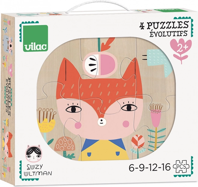 Tato nádherná dřevěná puzzle s příběhem z dílny Suzy Ultman pobaví a vzdělají vaše děti. Každá sada obsahuje puzzle s 6, 9, 12 a 16 dílky, přičemž každý obrázek nabízí jedinečný pohled do světa zvířat a přírody, plný květin a ptáků.