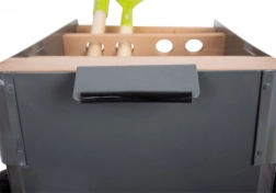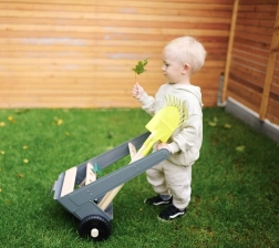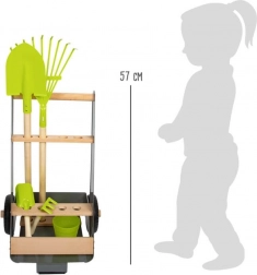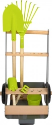 Tento zahradní vozík umožňuje mladým zahradníkům pracovat na svém vysněném záhonku. Stabilní vozík z buku a kovu lze snadno tlačit či tahat po zahradě, jelikož je vybaven pečnými koly. Obsahuje 5 kusů nářadí pro bezpečné a zábavné zahradničení.