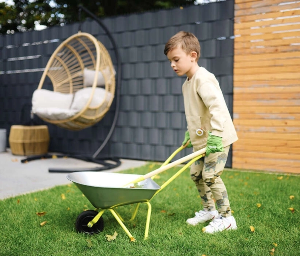 - Ideální pro venkovní hry: hrabání listí, přesun materiálu, první práce na zahradě.