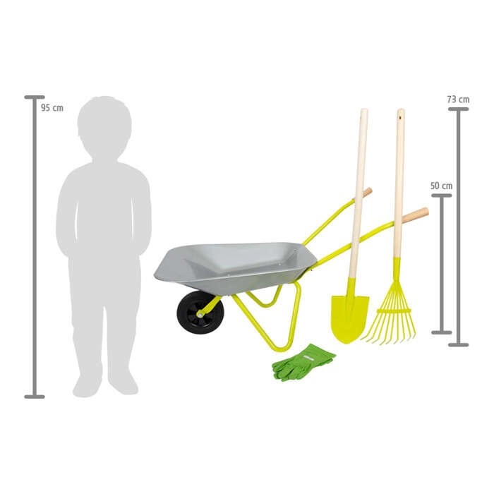 Objevte kvalitní dětskou zahradnickou sadu SMALL FOOT s kovovým kolečkem, lopatou, hráběmi a bavlněnými rukavicemi – ideální pro malé pomocníky na zahradě. Sada je vyrobena převážně z kovu, je robustní, bezpečná a nabízí skvělou zábavu při skutečných zahradnických pracích. Stabilní kovové provedení, kolečko cca 10 l / nosnost do 15 kg a ergonomické dřevěné rukojeti podporují snadnou manipulaci a rozvoj dovedností dětí.