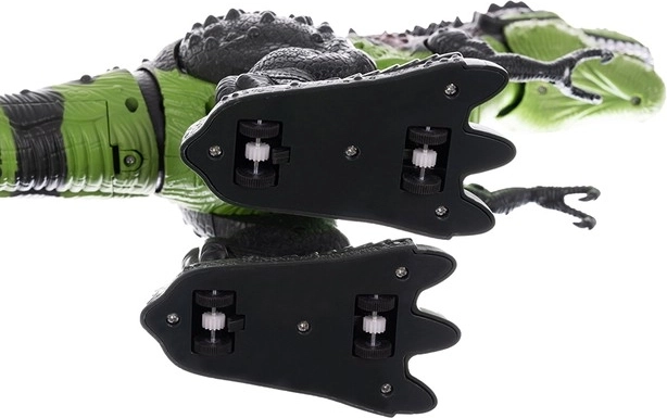 Vedle světelných a zvukových efektů má tento T-Rex schopnost klást vajíčka. Prostřednictvím speciálních otvorů na zádech hračka snáší vajíčka do přiloženého hnízda.