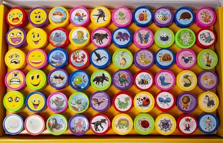 Sada dětských razítek nabízí 60 kusů s různými motivy, jako jsou zvířátka a emotikony, což zajišťuje hodinovou zábavu pro vaše děti. Bezpečný inkoust a obaly bez ostrých hran zaručují bezpečné používání.