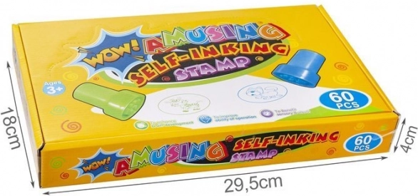 Kreativní sada razítek pro děti s 60 různými motivy, bezpečný inkoust a bezpečné obaly.