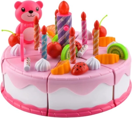 Růžový narozeninový dort se skládá ze 6 kusů, které se k sobě spojují suchým zipem. Sada obsahuje také mnoho doplňků a dekorací, kterými můžete ozdobit narozeninový dort dle libosti. Kreativní zábava nikdy nekončí! Doplňky lze měnit, přeskupovat, přesouvat – vytvoř si svůj vlastní dokonalý dort.