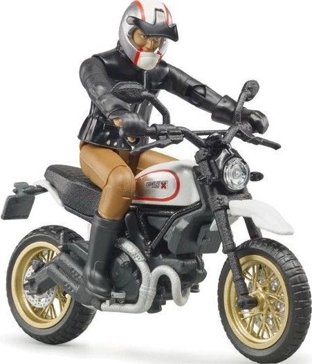 Model Bruder z řady BWORLD přináší autentický zážitek z jízdy. Motocykl Scrambler DUCATI Cafe Racer zaujme realistickými detaily, od designu motoru až po zlaté ráfky, a jezdec s plně pohyblivými klouby umožňuje dynamické pózy i akční scénáře. Robustní zpracování zaručuje dlouhou životnost a bezpečnou zábavu.