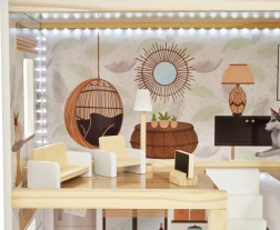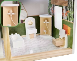 Dřevěný domeček pro panenky LULILO Floro je vytvořen ve stylu boho, což jej činí nejen krásným, ale i funkčním. S jeho třemi podlažími a prostornou terasou nabízí dostatek prostoru pro různé scénáře a hry. Domek je vybaven čtyřmi místnostmi: kuchyní, koupelnou, obývacím pokojem a ložnicí, kde naleznete každou místnost bohatě vybavenou jako v skutečném domově.