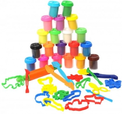 - 20 kelímků modelíny, dlátka, formy, vytlačovátka