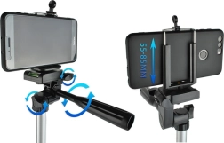 Stativová hlava je nastavitelná ve třech osách, což umožňuje precizní nastavení úhlu. Stabilní kovová konstrukce s plastovými komponenty zajišťuje optimální výkon a dlouhou životnost.