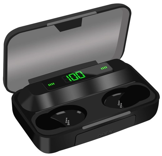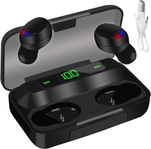 - Balení obsahuje: bezdrátová bluetooth sluchátka, pouzdro s powerbankou, USB kabel (MicroUSB), 2 páry špuntů
