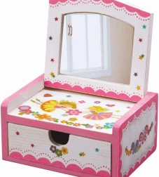 Proměň jednoduchou dřevěnou truhličku v kouzelnou šperkovnici s vílami, květinami a motýly. Sada obsahuje barvy, štětec a samolepky, takže si snadno vytvoříš svůj originální design. Praktické vnitřní zrcátko a spodní šuplík se postarají o bezpečné uložení drobností.