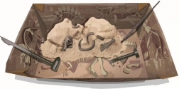 Zažij skutečné vykopávky. Sádrový blok skrývá jednotlivé části kostry, které děti odkryjí pomocí přiložených nástrojů.