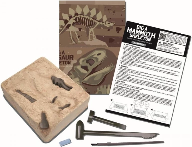 Tato interaktivní vykopávací sada promění váš stůl v malé paleontologické naleziště. Pomocí přiloženého dlátka a štětce děti opatrně odhalují jednotlivé kosti a následně z nich sestaví detailní model kostry mamuta. Zábava se tak spojí s učením a výsledkem je působivý exponát do dětského pokoje.