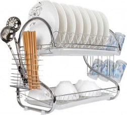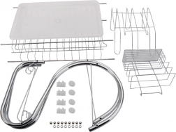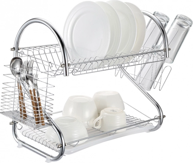 Horní patro má místo na 16 talířů. Dolní část je pak určena na misky, hrnky, kastroly atd. Součástí je snímatelný odkapávač na příbory a na skleničky – stačí je připevnit k bočním příčlím hlavní části odkapávače. Lze je libovolně snímat a prohazovat.