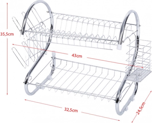 Třípatrový kovový odkapávač na nádobí se stojanem na příbory a prkénko