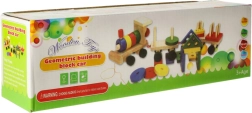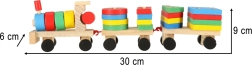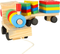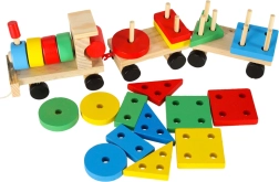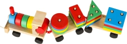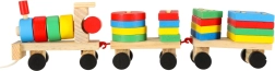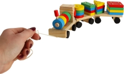 Roztomilý dřevěný vláček s lokomotivou a dvěma vagónky je skvělá hračka pro děti od 3 let. Obsahuje barevné kostky a sorter pro procvičení motoriky, učení tvarů a barev a rozvoj logického myšlení. Vláček má pohyblivá kola a šňůrku pro tahání, takže si děti užijí spoustu pohybu i tvořivé hry.