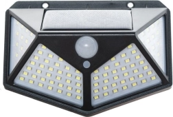 Tato kompaktní solární nástěnná lampa spojuje vysoký světelný výkon 100 LED, široký úhel svícení 270° a spolehlivou detekci pohybu v rozsahu 8–10 m. Integrované čidlo soumraku zajišťuje, že světlo svítí pouze tehdy, když je tma, což šetří energii a prodlužuje výdrž baterie.