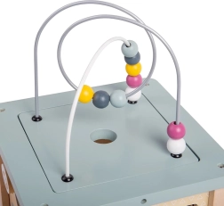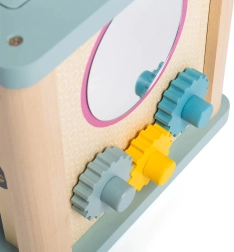 - Různorodé aktivity: vkládačka, kuličková dráha, ozubená kolečka a další zábavné prvky