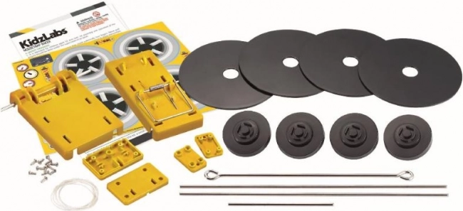 KidzLabs závodní auto ukazuje dětem základy fyziky skrze přeměnu energie z pastičky na pohyb.