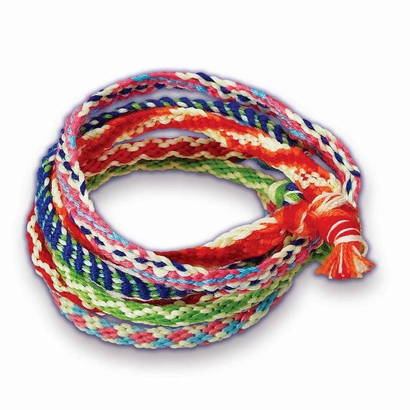 Kombinujte vícebarevné šňůrky a vytvářejte originální ploché i kulaté náramky přesně podle vlastní fantazie.