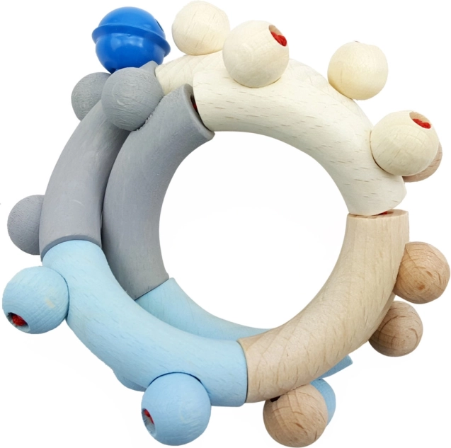 Vysoce kvalitní dřevěné chrastítko, ideální pro stimulaci představivosti a rozvoj jemné motoriky dítěte. Chrastítko zaujme svými pastelovými barvami a je eticky vyrobeno z ekologicky spravovaných lesů.