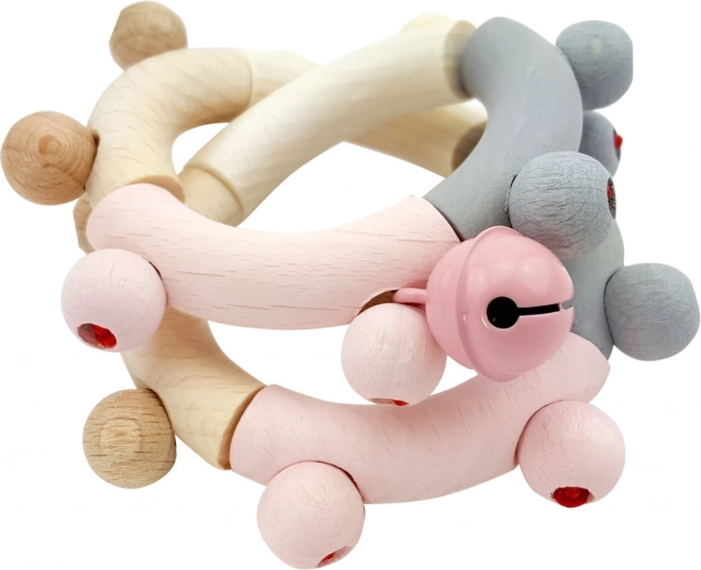 Hladké dřevěné prvky a korálky motivují miminko k uchopení, mačkání a převalování, čímž rozvíjejí koordinaci oko–ruka a hmat.