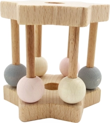 Kvalitní dřevěné chrastítko, které rozvíjí motorické dovednosti dítěte a zaujme jeho pozornost díky svému modernímu designu.