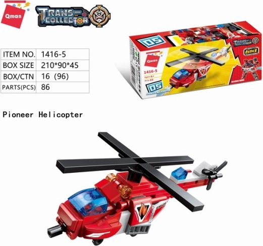 - 6 modelů v 1 – vozy, vrtulník a možnost složit velkého mecha.