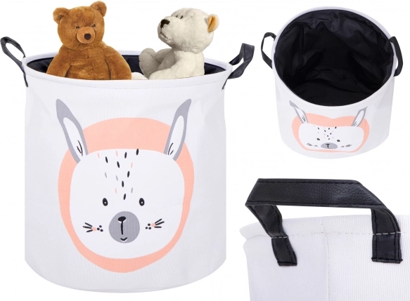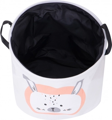 Stylový a praktický úložný koš je ideální pro hračky, oblečení nebo prádlo. Neutrální bílá barva s něžným zvířecím motivem ozdobí každý dětský pokoj a podpoří návyk k pořádku.