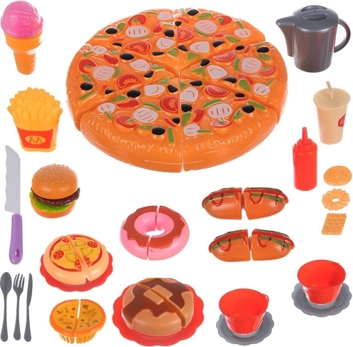 Tato sada hraček na fast food pro děti nabízí 42 různorodých prvků včetně pizzy, hotdogů a hranolků pro fantastickou zábavu a rozvoj kreativity.