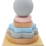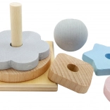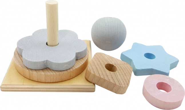 Klasická hračka s pěti stohovacími tvary a dřevěnou koulí, která je ideální pro malé dětské ručičky. Díky svému tvaru je snadno uchopitelná a pomáhá rozvíjet koordinaci a jemnou motoriku rukou.