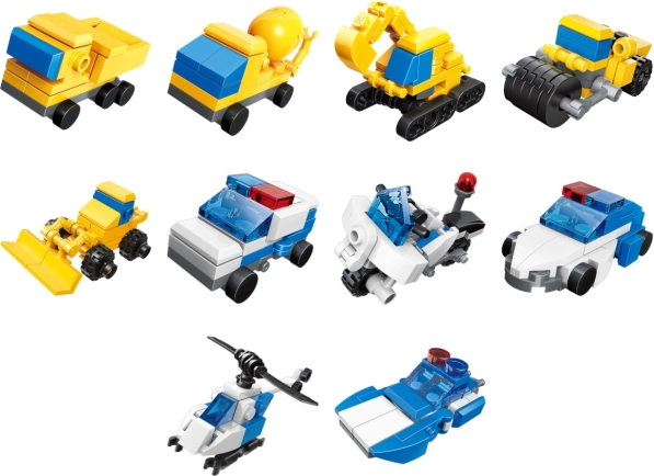Tato sada obsahuje 10 různých modelů včetně dodávky, bagru, hlídkového vrtulníku a dalších, což zaručuje nekonečné možnosti pro vaše děti rozvíjet jejich představivost.