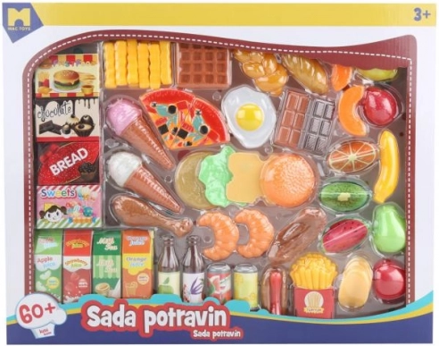 Objevte realistické makety potravin, které dětem umožňují hravě poznávat svět jídel. Tato sada obsahuje rozmanité druhy jako ovoce, zeleninu, nápoje a pečivo.