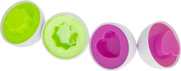 Set obsahuje 12 vajíček s různými tvary a barvami ukrytými pod skořápku. Hra spočívá v přiřazování poloviny vajíčka podle tvaru a barvy tak, aby vytvořily celek. Toto je nejen zábavná, ale také edukativní činnost, která posiluje logické myšlení. Vejce jsou lehká a snadno přenosná, což je činí ideálními pro zabavení při dlouhých cestách nebo při čekání na návštěvu u lékaře.