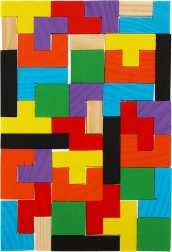 Objevte zábavnou a vzdělávací skládačku inspirovanou hrou TETRIS. Úkolem je poskládat jednotlivé dřevěné tvary do zvoleného vzoru tak, aby vytvořily kompaktní celek. Díky pestrým barvám a rozmanitým tvarům si děti procvičí představivost i trpělivost.