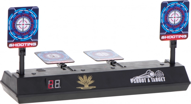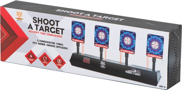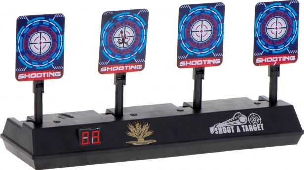 Zlepšete svou mušku s elektronickým střeleckým terčem se čtyřmi sklopnými cíli a digitálním počítadlem skóre. Ideální pro dětské pistole na pěnové šipky, nabízí světelné a zvukové efekty pro ještě větší zábavu. Po zasažení všech čtyř cílů se terče automaticky zvednou a hra může pokračovat.