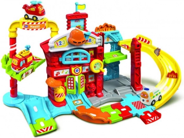 Tut Tut hasičská stanice přináší dětem spoustu akce a objevování. Stanici lze sestavit do desítek různých variant budovy a cest, které mezi sebou snadno propojíte i s dalšími drahami Tut Tut autíčka. Integrované SmartPoint body spouštějí zábavné fráze, písničky a melodie mluvícího hasičského autíčka.