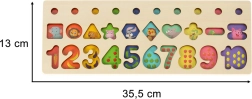 Hračka je pečlivě zpracovaná, hladce broušená a příjemná na dotek. Podporuje rozvoj motoriky, koordinační schopnosti, vizuální rozlišování i kreativitu. Skvěle se hodí pro první seznámení s čísly, barvami a tvary v domácím prostředí i v mateřských školách.