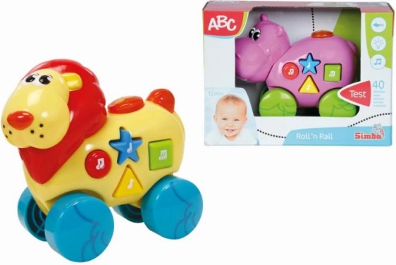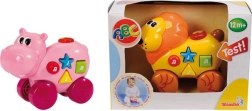 Hrací zvířátko na kolečkách. Pod 4 tlačítky různých barev a tvarů se ukrývá 40 dětských melodií. Velikost 14 cm.