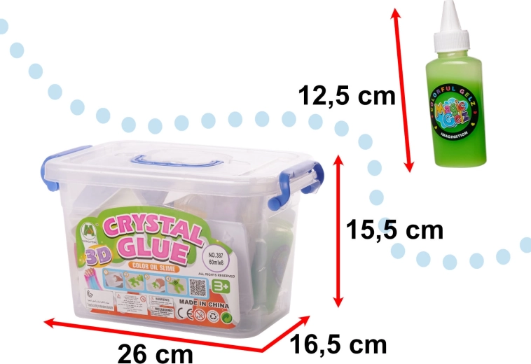 Gel můžete nalévat i přímo do roztoku a tvořit vlastní jedinečné tvary. Tvoření rozvíjí kreativitu, trpělivost a jemnou motoriku a je skvělým relaxem i pro dospělé. Celý set je uložen v pevném plastovém boxu pro snadné přenášení a ukládání.