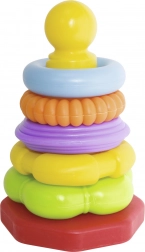 Pyramida s barevnými kroužky je ideální pomůcka pro rozvoj motoriky a schopnost kombinování u dětí. Obsahuje pět různobarevných kroužků různých tvarů.