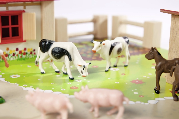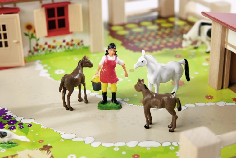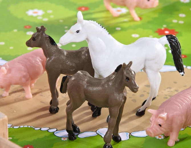Koně, krávy, prasátka, husy a pečovatelka podněcují fantazii, učí děti rozpoznávat druhy zvířat a rozvíjejí sociální dovednosti v rámci role-play.
