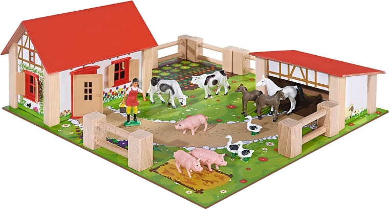 - Kompletní farma – domek, stáj, ohrady, podložka a 12 figurek