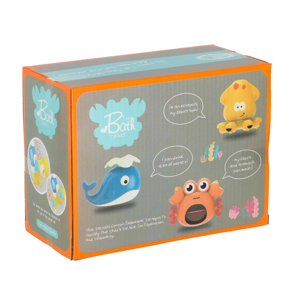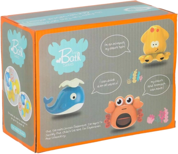 Velryba, krab a chobotnice promění vodní hru v dobrodružství. Děti mohou měnit jejich umístění a zkoušet různé výstupy vody.