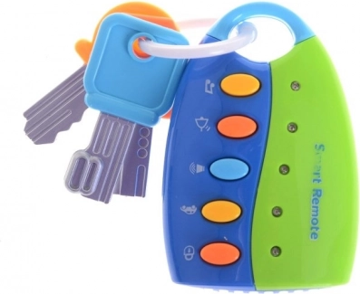 Díky realistickým zvukům a hudbě rozveselí batole při hře. Na kroužku jsou připevněny tři velké klíče, všechny jsou v živých barvách a mohou sloužit také jako chrastítko. Každé tlačítko má jinou zábavnou funkci: zvuk klíče, zvuk zámku, zvuk startování auta, klakson, zvonek nebo hudba. Po stisknutí tlačítka blikají světla. Všechny tyto vymoženosti upoutají pozornost Vašeho dítěte při hře na cestách. Díky této hračce bude dítě trénovat koordinaci ruky a oka a jemnou motoriku.