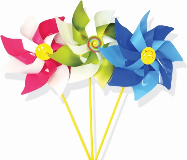 Každý větrník je v různém barevném provedení, což zvyšuje jeho atraktivitu a zábavnost.